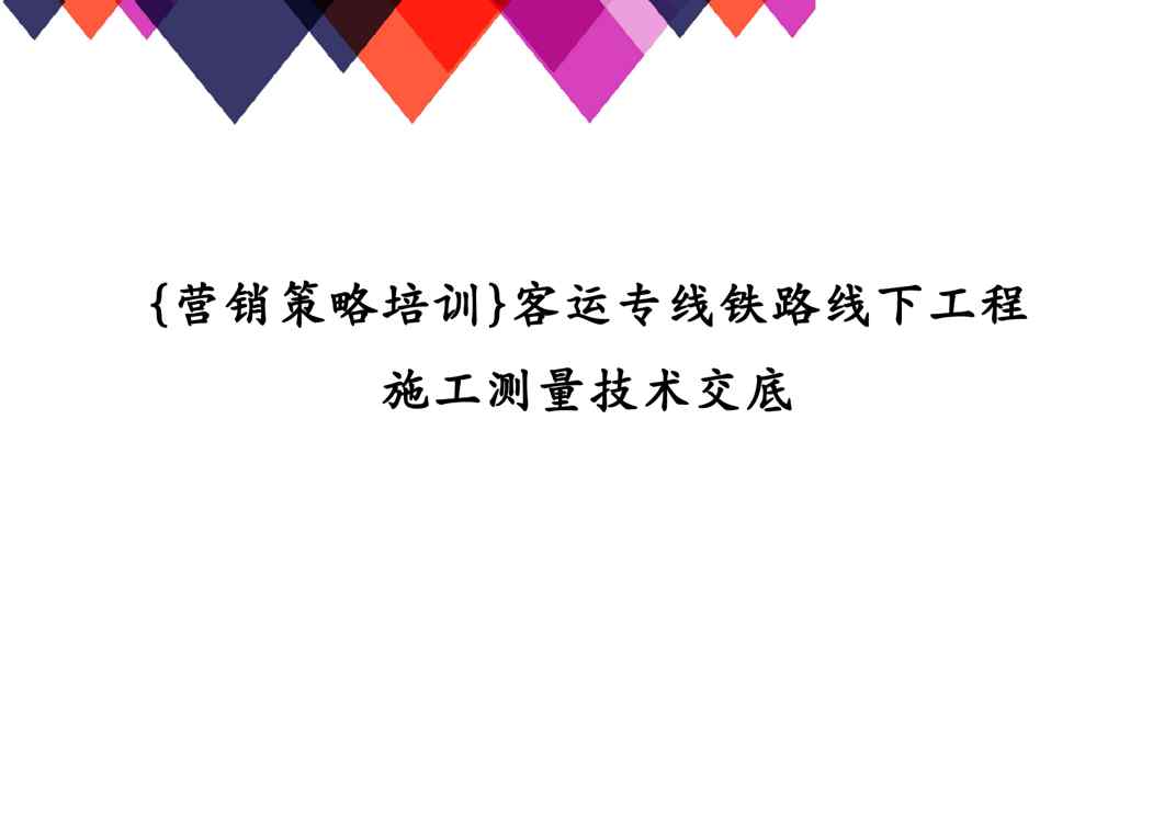 不久前,最新文档《{营销策略培训}客运专线铁路线下工程施工测量技术交底》全文正式在本站发布,感兴趣的用户可以下载阅读。 声明:本站所有文章,如无特殊说明或标注,均为本站原创发布。任何个人或组织,在未征得本站同意时,禁止复制、盗用、采集、发布本站内容到任何网站、书籍等各类媒体平台。如若本站内容侵犯了原著者的合法权益,可联系我们进行处理。