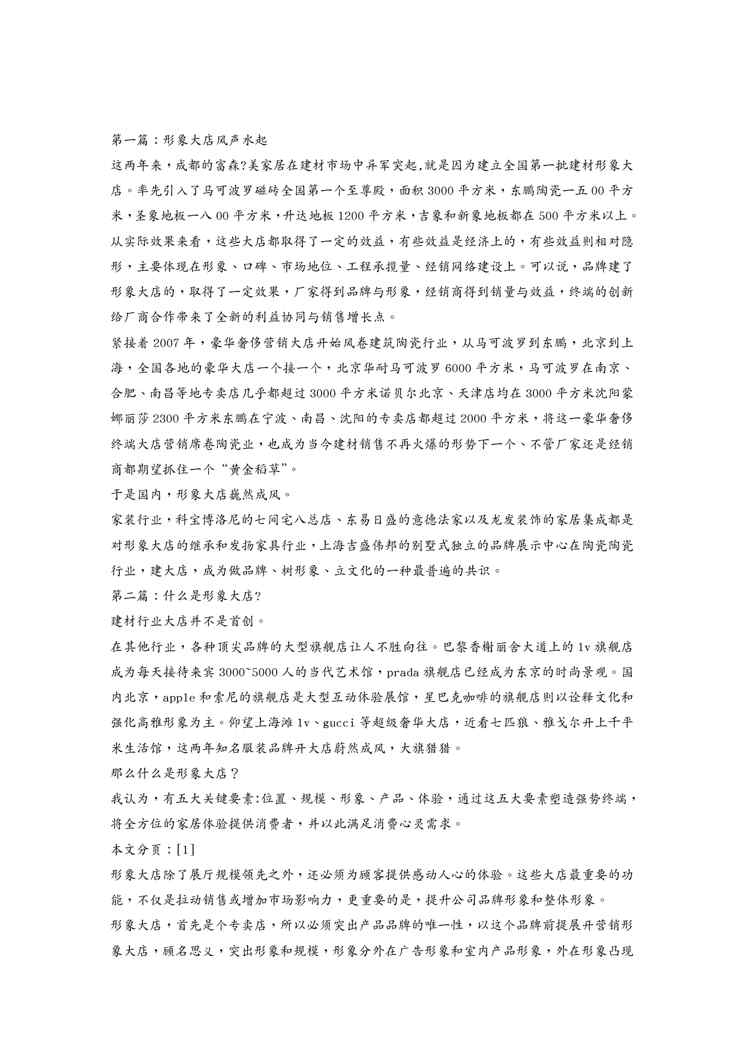 本站正式发布了《{营销策略培训}建材业大店营销能走多远》文档,文档详细内容可下载阅读。 声明:本站所有文章,如无特殊说明或标注,均为本站原创发布。任何个人或组织,在未征得本站同意时,禁止复制、盗用、采集、发布本站内容到任何网站、书籍等各类媒体平台。如若本站内容侵犯了原著者的合法权益,可联系我们进行处理。
