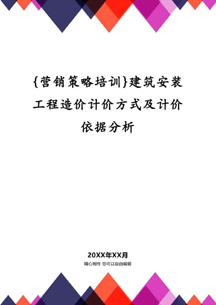 本站资深用户发布了最新的《{营销策略培训}建筑安装工程造价计价方式及计价依据分析》文档,以下内容为预览,详细内容可下载阅读。 声明:本站所有文章,如无特殊说明或标注,均为本站原创发布。任何个人或组织,在未征得本站同意时,禁止复制、盗用、采集、发布本站内容到任何网站、书籍等各类媒体平台。如若本站内容侵犯了原著者的合法权益,可联系我们进行处理。