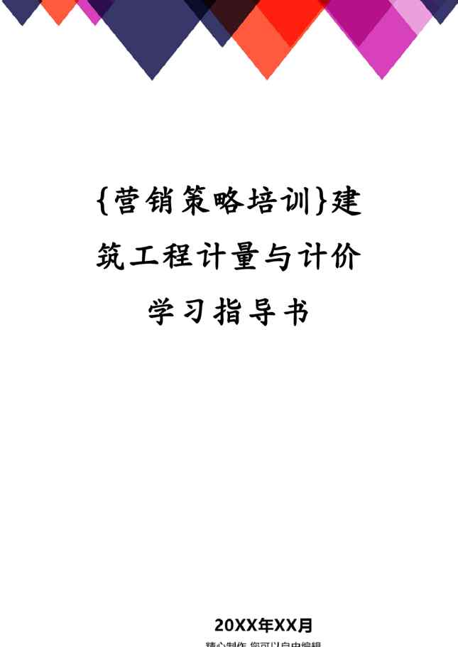 本站正式发布了《{营销策略培训}建筑工程计量与计价学习指导书》文档,文档详细内容可下载阅读。 声明:本站所有文章,如无特殊说明或标注,均为本站原创发布。任何个人或组织,在未征得本站同意时,禁止复制、盗用、采集、发布本站内容到任何网站、书籍等各类媒体平台。如若本站内容侵犯了原著者的合法权益,可联系我们进行处理。