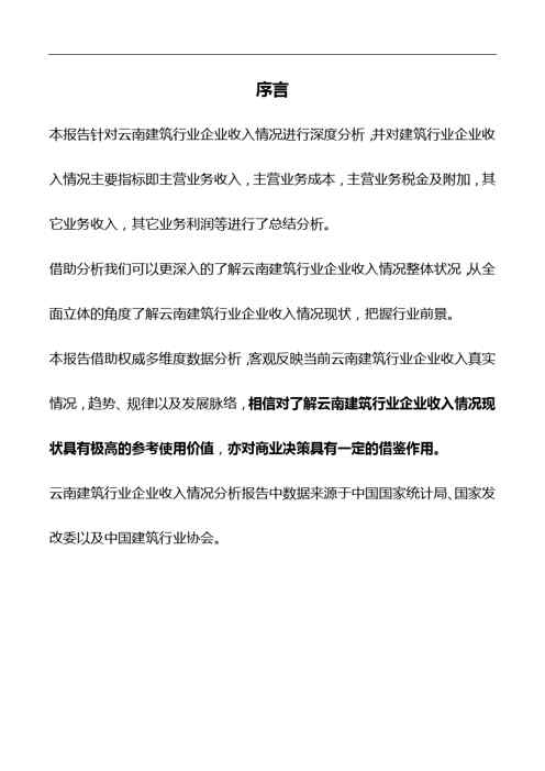 本站资深用户发布了最新的《2018版云南建筑行业企业收入情况分析报告》文档,以下内容为预览,详细内容可下载阅读。 声明:本站所有文章,如无特殊说明或标注,均为本站原创发布。任何个人或组织,在未征得本站同意时,禁止复制、盗用、采集、发布本站内容到任何网站、书籍等各类媒体平台。如若本站内容侵犯了原著者的合法权益,可联系我们进行处理。