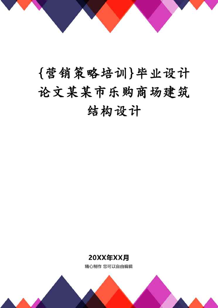 不久前,最新文档《{营销策略培训}毕业设计论文某某市乐购商场建筑结构设计》全文正式在本站发布,感兴趣的用户可以下载阅读。 声明:本站所有文章,如无特殊说明或标注,均为本站原创发布。任何个人或组织,在未征得本站同意时,禁止复制、盗用、采集、发布本站内容到任何网站、书籍等各类媒体平台。如若本站内容侵犯了原著者的合法权益,可联系我们进行处理。