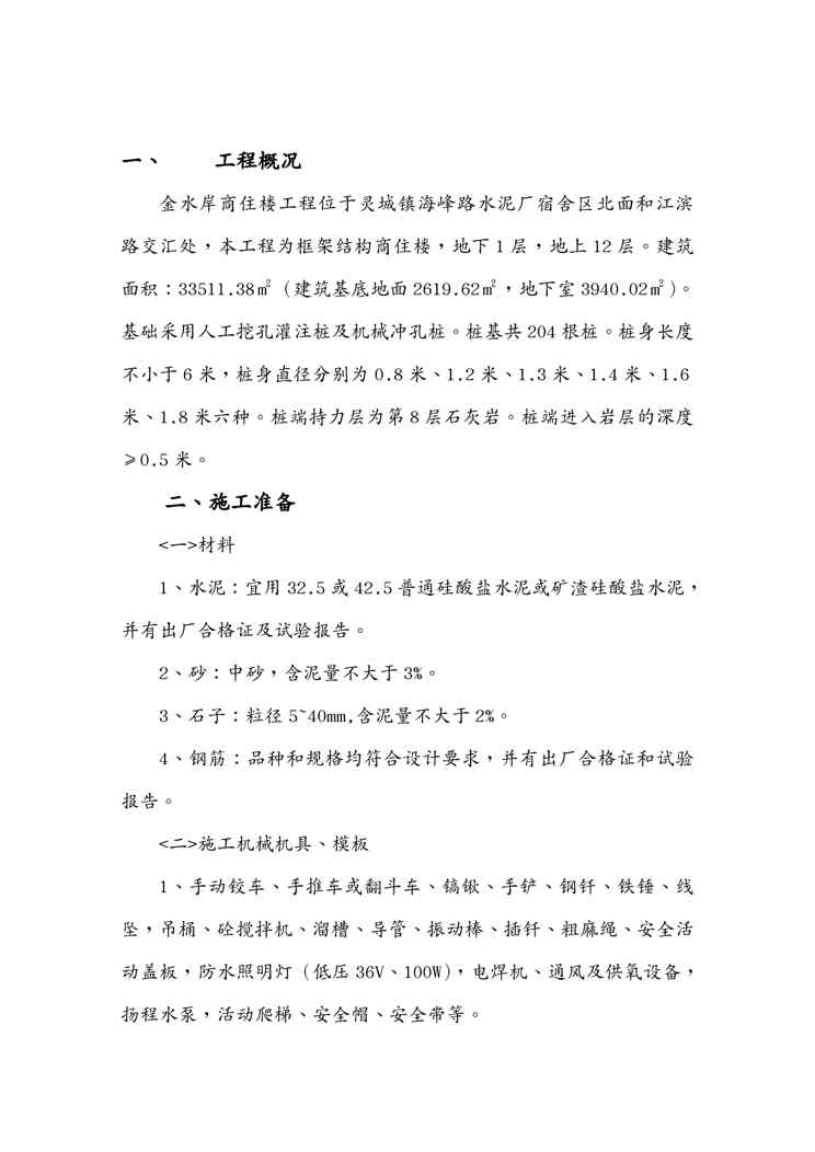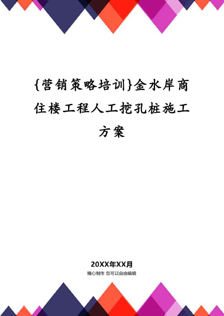 本站资深用户发布了最新的《{营销策略培训}金水岸商住楼工程人工挖孔桩施工方案》文档,以下内容为预览,详细内容可下载阅读。 声明:本站所有文章,如无特殊说明或标注,均为本站原创发布。任何个人或组织,在未征得本站同意时,禁止复制、盗用、采集、发布本站内容到任何网站、书籍等各类媒体平台。如若本站内容侵犯了原著者的合法权益,可联系我们进行处理。