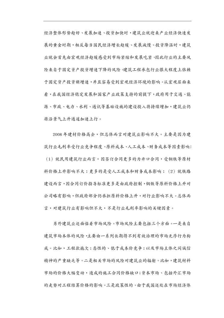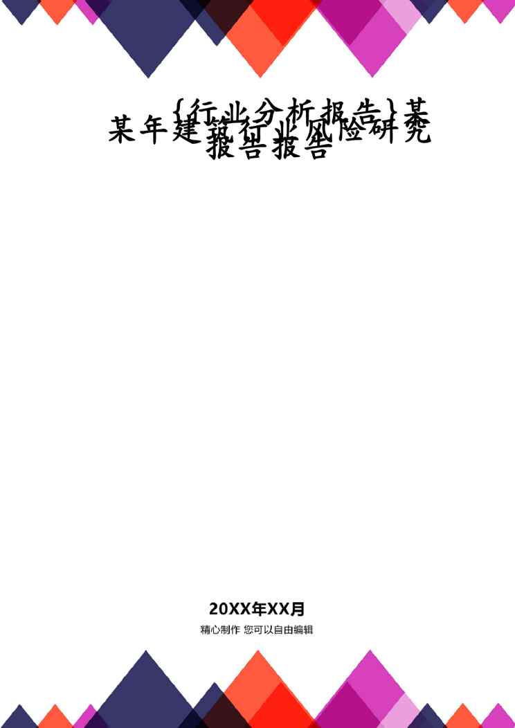 本站资深用户发布了最新的《{行业分析报告}某某年建筑行业风险研究报告报告》文档,以下内容为预览,详细内容可下载阅读。 声明:本站所有文章,如无特殊说明或标注,均为本站原创发布。任何个人或组织,在未征得本站同意时,禁止复制、盗用、采集、发布本站内容到任何网站、书籍等各类媒体平台。如若本站内容侵犯了原著者的合法权益,可联系我们进行处理。