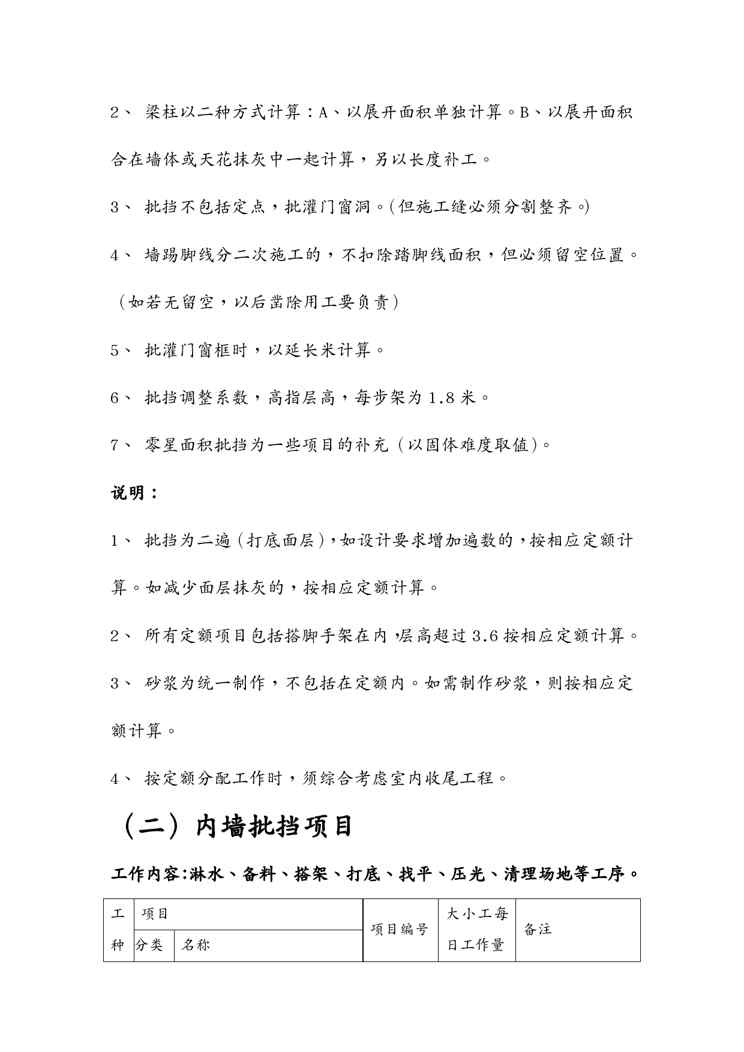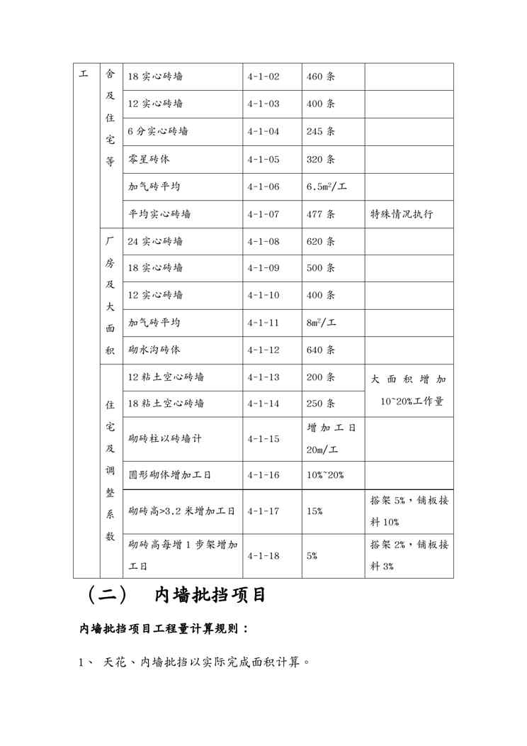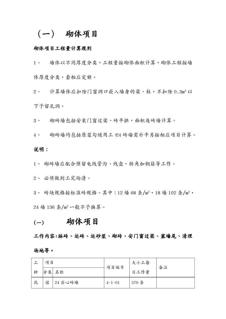 本站资深用户发布了最新的《{行政总务}建筑工程施工工人劳动定额》文档,以下内容为预览,详细内容可下载阅读。 声明:本站所有文章,如无特殊说明或标注,均为本站原创发布。任何个人或组织,在未征得本站同意时,禁止复制、盗用、采集、发布本站内容到任何网站、书籍等各类媒体平台。如若本站内容侵犯了原著者的合法权益,可联系我们进行处理。