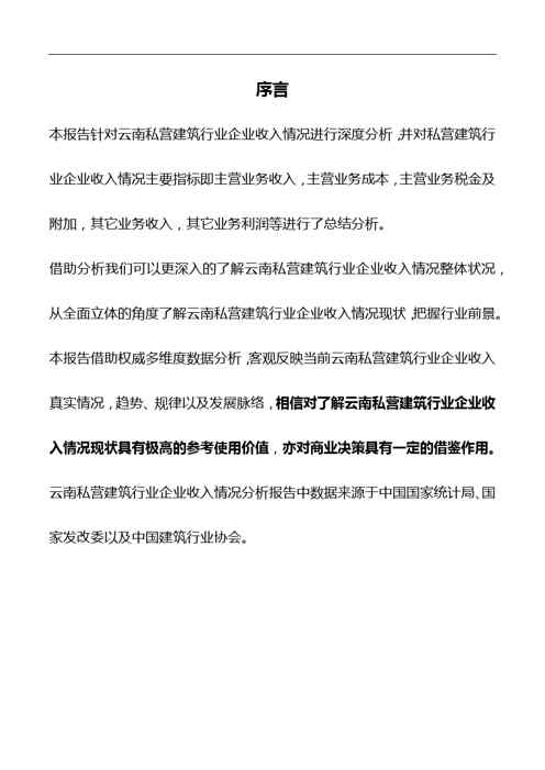 不久前,最新文档《2018版云南私营建筑行业企业收入情况分析报告》全文正式在本站发布,感兴趣的用户可以下载阅读。 声明:本站所有文章,如无特殊说明或标注,均为本站原创发布。任何个人或组织,在未征得本站同意时,禁止复制、盗用、采集、发布本站内容到任何网站、书籍等各类媒体平台。如若本站内容侵犯了原著者的合法权益,可联系我们进行处理。