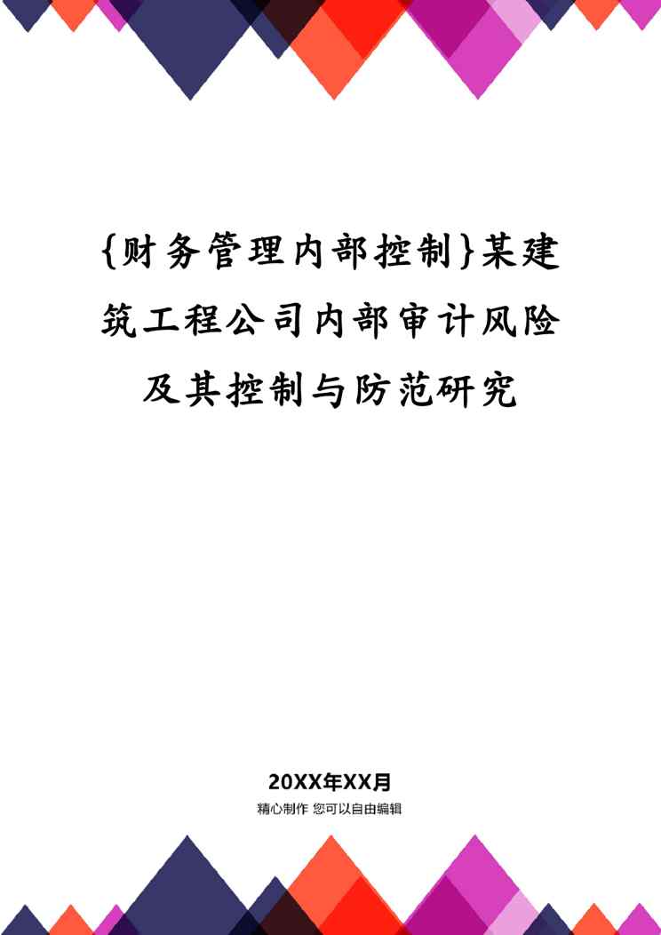 本站正式发布了《{财务管理内部控制}某建筑工程公司内部审计风险及其控制与防范研究》文档,文档详细内容可下载阅读。 声明:本站所有文章,如无特殊说明或标注,均为本站原创发布。任何个人或组织,在未征得本站同意时,禁止复制、盗用、采集、发布本站内容到任何网站、书籍等各类媒体平台。如若本站内容侵犯了原著者的合法权益,可联系我们进行处理。