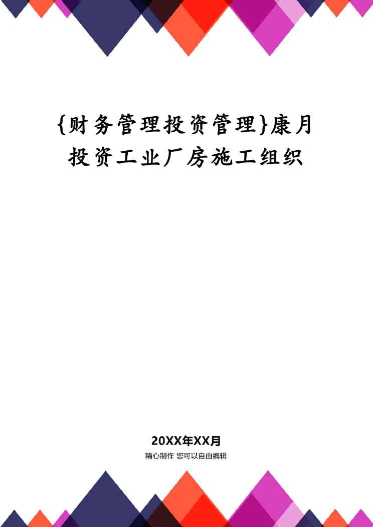 本站正式发布了《{财务管理投资管理}康月投资工业厂房施工组织》文档,文档详细内容可下载阅读。 声明:本站所有文章,如无特殊说明或标注,均为本站原创发布。任何个人或组织,在未征得本站同意时,禁止复制、盗用、采集、发布本站内容到任何网站、书籍等各类媒体平台。如若本站内容侵犯了原著者的合法权益,可联系我们进行处理。