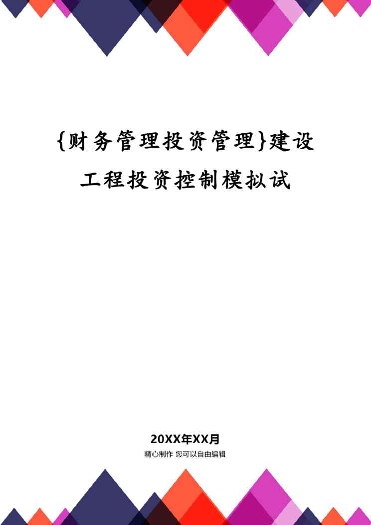 本站正式发布了《{财务管理投资管理}建设工程投资控制模拟试》文档,文档详细内容可下载阅读。 声明:本站所有文章,如无特殊说明或标注,均为本站原创发布。任何个人或组织,在未征得本站同意时,禁止复制、盗用、采集、发布本站内容到任何网站、书籍等各类媒体平台。如若本站内容侵犯了原著者的合法权益,可联系我们进行处理。