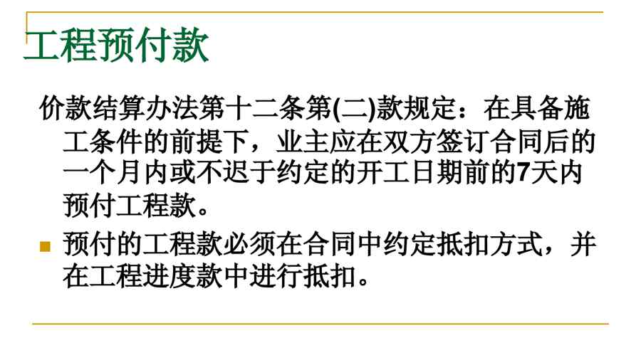 本站正式发布了《{财务管理收款付款}建筑工程工程预付款》文档,文档详细内容可下载阅读。 声明:本站所有文章,如无特殊说明或标注,均为本站原创发布。任何个人或组织,在未征得本站同意时,禁止复制、盗用、采集、发布本站内容到任何网站、书籍等各类媒体平台。如若本站内容侵犯了原著者的合法权益,可联系我们进行处理。