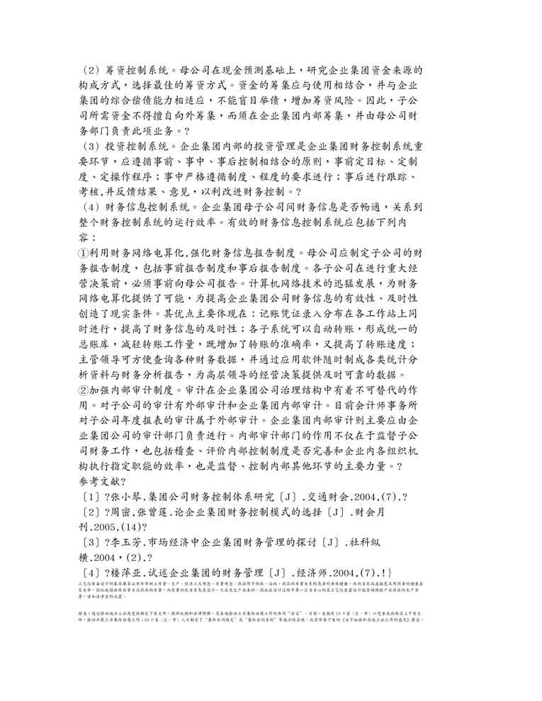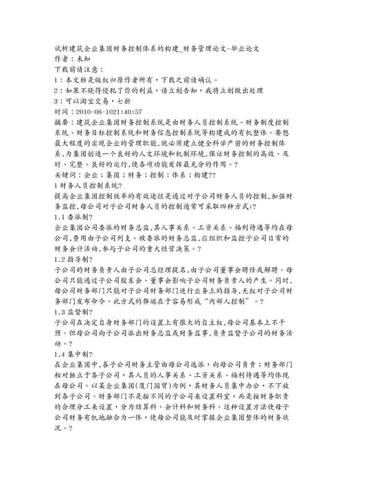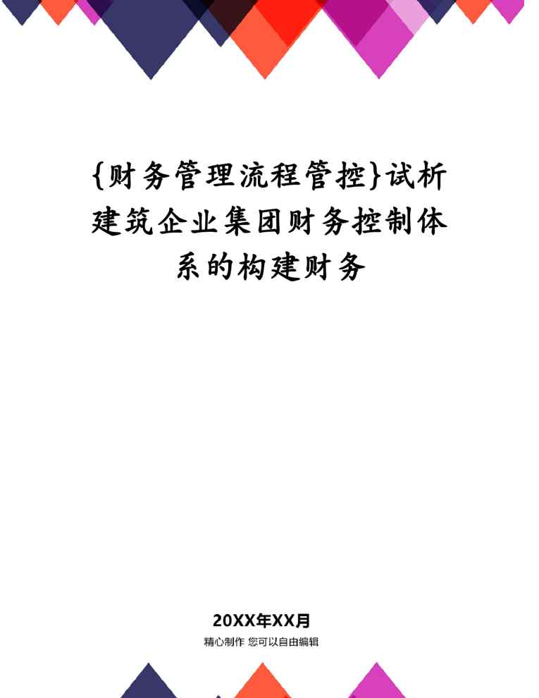本站资深用户发布了最新的《{财务管理流程管控}试析建筑企业集团财务控制体系的构建财务》文档,以下内容为预览,详细内容可下载阅读。 声明:本站所有文章,如无特殊说明或标注,均为本站原创发布。任何个人或组织,在未征得本站同意时,禁止复制、盗用、采集、发布本站内容到任何网站、书籍等各类媒体平台。如若本站内容侵犯了原著者的合法权益,可联系我们进行处理。