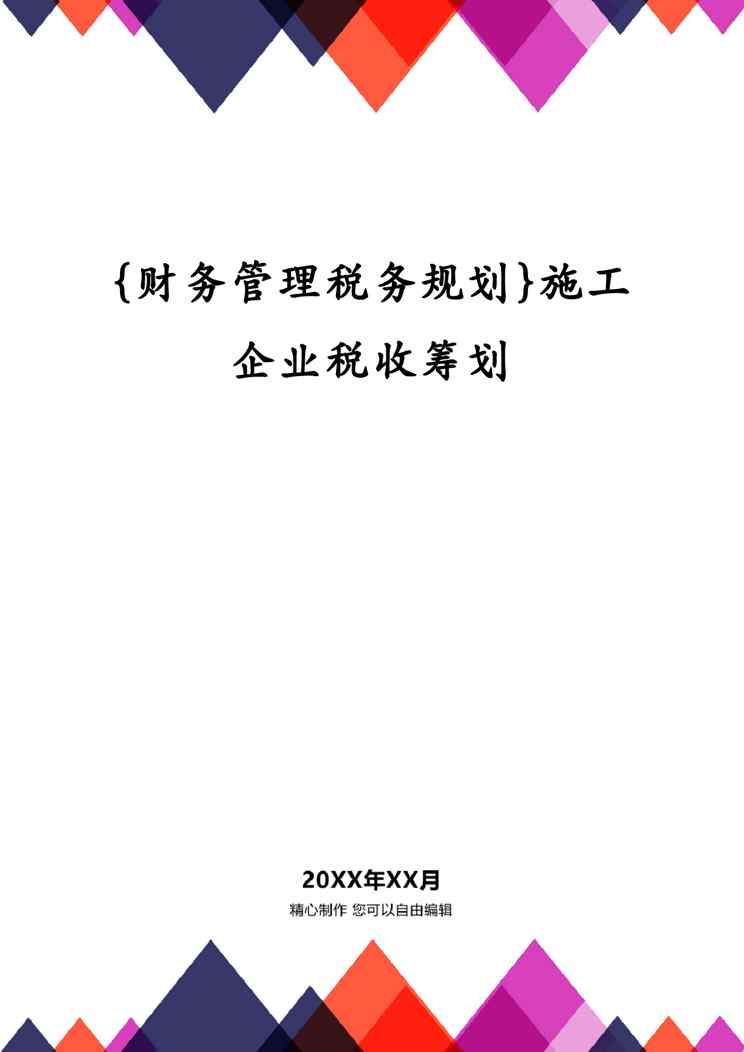 本站正式发布了《{财务管理税务规划}施工企业税收筹划》文档,文档详细内容可下载阅读。 声明:本站所有文章,如无特殊说明或标注,均为本站原创发布。任何个人或组织,在未征得本站同意时,禁止复制、盗用、采集、发布本站内容到任何网站、书籍等各类媒体平台。如若本站内容侵犯了原著者的合法权益,可联系我们进行处理。