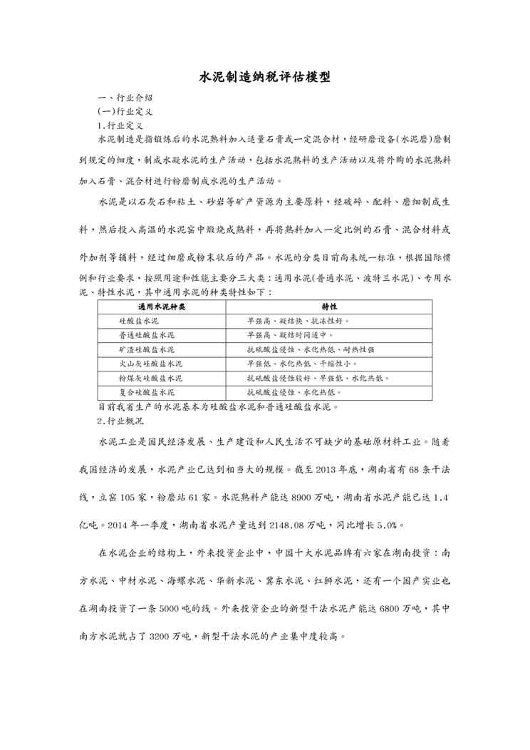 本站正式发布了《{财务管理税务规划}某年最新水泥制造纳税评估模型》文档,文档详细内容可下载阅读。 声明:本站所有文章,如无特殊说明或标注,均为本站原创发布。任何个人或组织,在未征得本站同意时,禁止复制、盗用、采集、发布本站内容到任何网站、书籍等各类媒体平台。如若本站内容侵犯了原著者的合法权益,可联系我们进行处理。