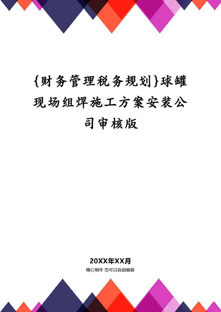 本站资深用户发布了最新的《{财务管理税务规划}球罐现场组焊施工方案安装公司审核版》文档,以下内容为预览,详细内容可下载阅读。 声明:本站所有文章,如无特殊说明或标注,均为本站原创发布。任何个人或组织,在未征得本站同意时,禁止复制、盗用、采集、发布本站内容到任何网站、书籍等各类媒体平台。如若本站内容侵犯了原著者的合法权益,可联系我们进行处理。