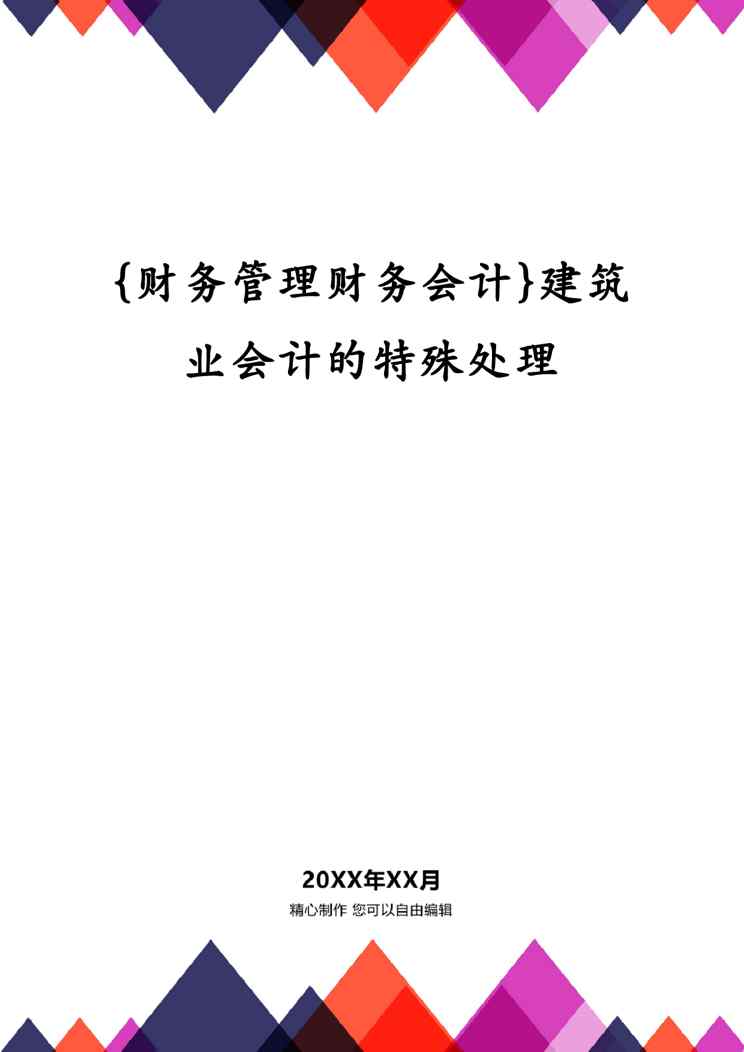 本站资深用户发布了最新的《{财务管理财务会计}建筑业会计的特殊处理》文档,以下内容为预览,详细内容可下载阅读。 声明:本站所有文章,如无特殊说明或标注,均为本站原创发布。任何个人或组织,在未征得本站同意时,禁止复制、盗用、采集、发布本站内容到任何网站、书籍等各类媒体平台。如若本站内容侵犯了原著者的合法权益,可联系我们进行处理。
