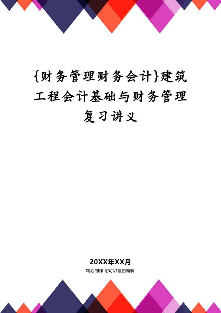 本站正式发布了《{财务管理财务会计}建筑工程会计基础与财务管理复习讲义》文档,文档详细内容可下载阅读。 声明:本站所有文章,如无特殊说明或标注,均为本站原创发布。任何个人或组织,在未征得本站同意时,禁止复制、盗用、采集、发布本站内容到任何网站、书籍等各类媒体平台。如若本站内容侵犯了原著者的合法权益,可联系我们进行处理。