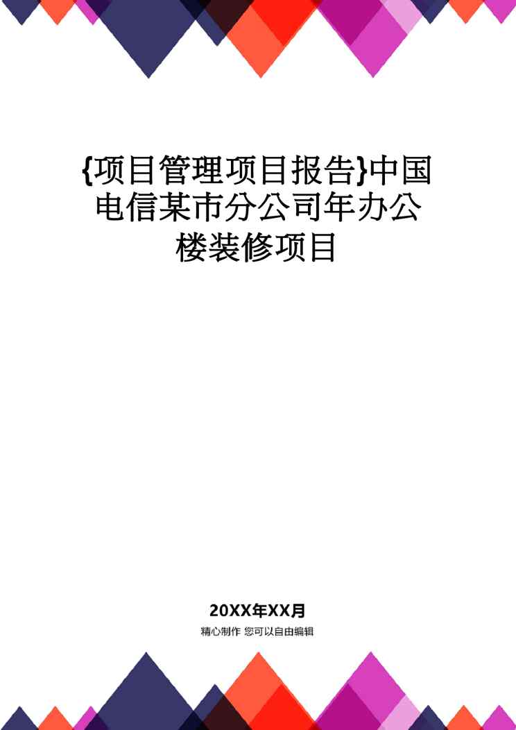 本站正式发布了《{项目管理项目报告}中国电信某市分公司年办公楼装修项目》文档,文档详细内容可下载阅读。 声明:本站所有文章,如无特殊说明或标注,均为本站原创发布。任何个人或组织,在未征得本站同意时,禁止复制、盗用、采集、发布本站内容到任何网站、书籍等各类媒体平台。如若本站内容侵犯了原著者的合法权益,可联系我们进行处理。