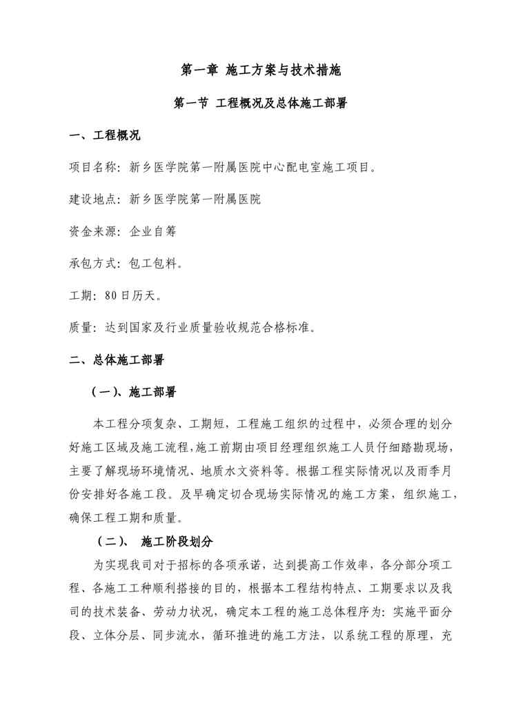 本站资深用户发布了最新的《{项目管理项目报告}医院中心配电室施工项目施工组织设计》文档,以下内容为预览,详细内容可下载阅读。 声明:本站所有文章,如无特殊说明或标注,均为本站原创发布。任何个人或组织,在未征得本站同意时,禁止复制、盗用、采集、发布本站内容到任何网站、书籍等各类媒体平台。如若本站内容侵犯了原著者的合法权益,可联系我们进行处理。