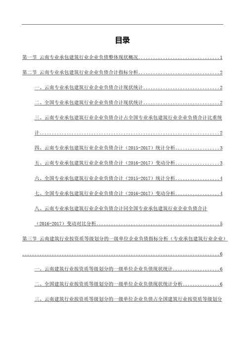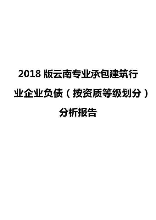 本站资深用户发布了最新的《2018版云南专业承包建筑行业企业负债(按资质等级划分)分析报告》文档,以下内容为预览,详细内容可下载阅读。 声明:本站所有文章,如无特殊说明或标注,均为本站原创发布。任何个人或组织,在未征得本站同意时,禁止复制、盗用、采集、发布本站内容到任何网站、书籍等各类媒体平台。如若本站内容侵犯了原著者的合法权益,可联系我们进行处理。