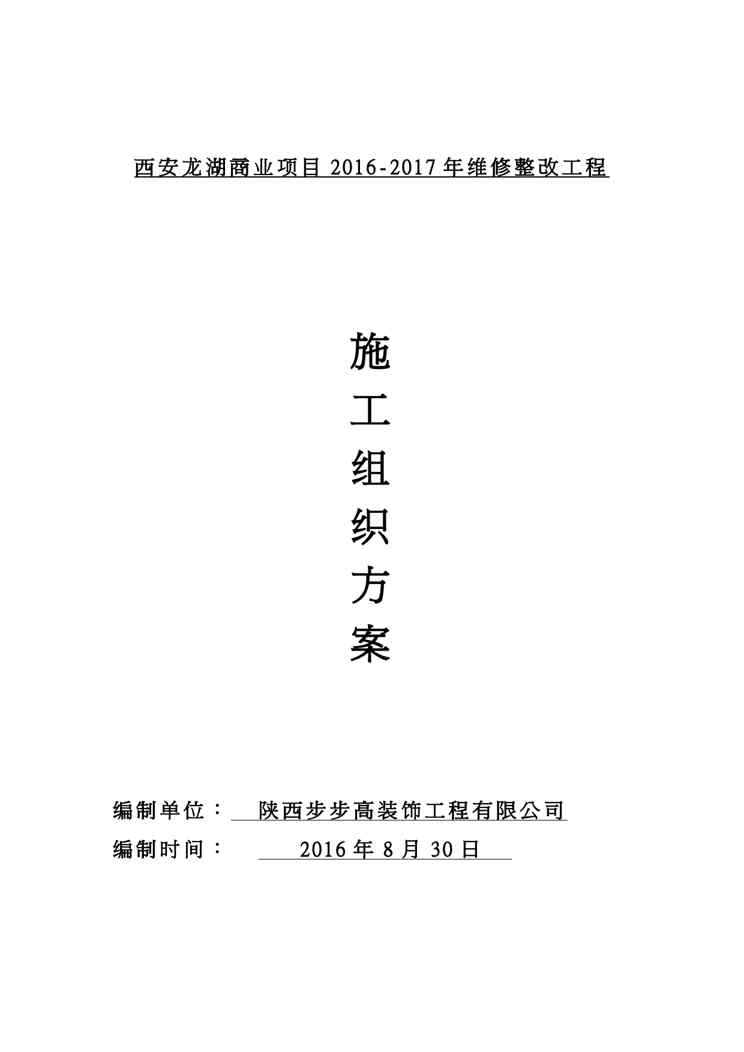 本站正式发布了《{项目管理项目报告}某商业项目维修整改工程施工组织方案》文档,文档详细内容可下载阅读。 声明:本站所有文章,如无特殊说明或标注,均为本站原创发布。任何个人或组织,在未征得本站同意时,禁止复制、盗用、采集、发布本站内容到任何网站、书籍等各类媒体平台。如若本站内容侵犯了原著者的合法权益,可联系我们进行处理。