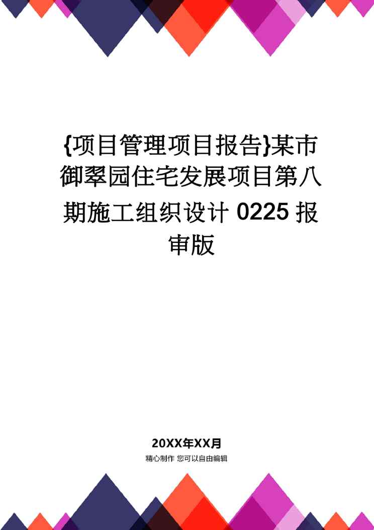 本站资深用户发布了最新的《{项目管理项目报告}某市御翠园住宅发展项目第八期施工组织设计0225报审版》文档,以下内容为预览,详细内容可下载阅读。 声明:本站所有文章,如无特殊说明或标注,均为本站原创发布。任何个人或组织,在未征得本站同意时,禁止复制、盗用、采集、发布本站内容到任何网站、书籍等各类媒体平台。如若本站内容侵犯了原著者的合法权益,可联系我们进行处理。
