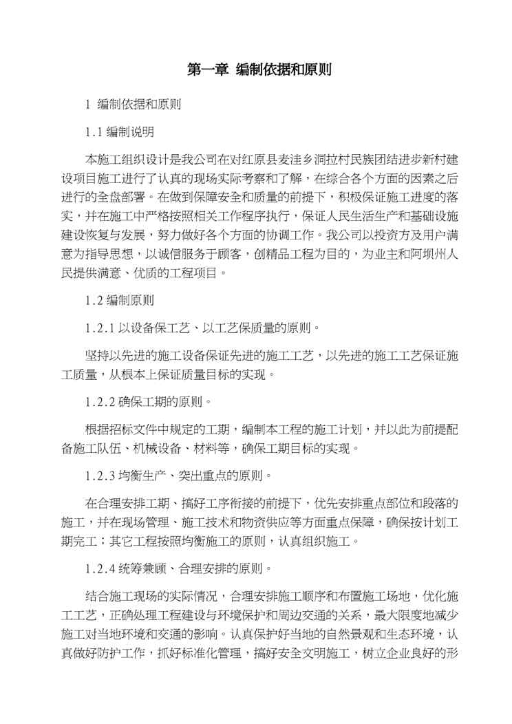 本站资深用户发布了最新的《{项目管理项目报告}某新村建设项目施工施工组织设计》文档,以下内容为预览,详细内容可下载阅读。 声明:本站所有文章,如无特殊说明或标注,均为本站原创发布。任何个人或组织,在未征得本站同意时,禁止复制、盗用、采集、发布本站内容到任何网站、书籍等各类媒体平台。如若本站内容侵犯了原著者的合法权益,可联系我们进行处理。