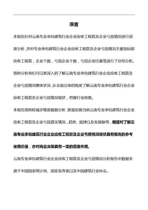不久前,最新文档《2018版云南专业承包建筑行业企业应收工程款及企业亏损情况分析报告》全文正式在本站发布,感兴趣的用户可以下载阅读。