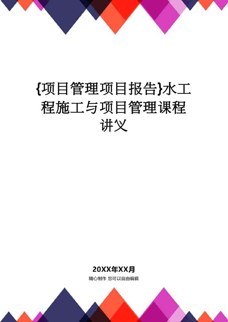 本站资深用户发布了最新的《{项目管理项目报告}水工程施工与项目管理课程讲义》文档,以下内容为预览,详细内容可下载阅读。 声明:本站所有文章,如无特殊说明或标注,均为本站原创发布。任何个人或组织,在未征得本站同意时,禁止复制、盗用、采集、发布本站内容到任何网站、书籍等各类媒体平台。如若本站内容侵犯了原著者的合法权益,可联系我们进行处理。