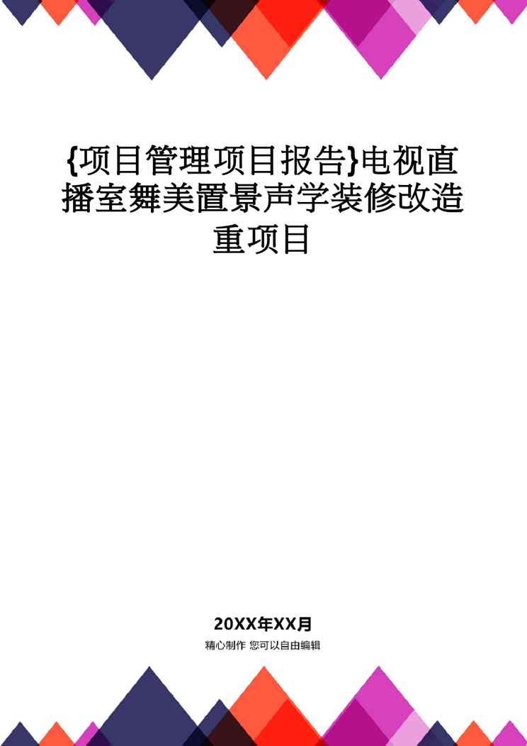 不久前,最新文档《{项目管理项目报告}电视直播室舞美置景声学装修改造重项目》全文正式在本站发布,感兴趣的用户可以下载阅读。 声明:本站所有文章,如无特殊说明或标注,均为本站原创发布。任何个人或组织,在未征得本站同意时,禁止复制、盗用、采集、发布本站内容到任何网站、书籍等各类媒体平台。如若本站内容侵犯了原著者的合法权益,可联系我们进行处理。
