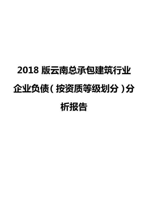本站资深用户发布了最新的《2018版云南总承包建筑行业企业负债(按资质等级划分)分析报告》文档,以下内容为预览,详细内容可下载阅读。 声明:本站所有文章,如无特殊说明或标注,均为本站原创发布。任何个人或组织,在未征得本站同意时,禁止复制、盗用、采集、发布本站内容到任何网站、书籍等各类媒体平台。如若本站内容侵犯了原著者的合法权益,可联系我们进行处理。