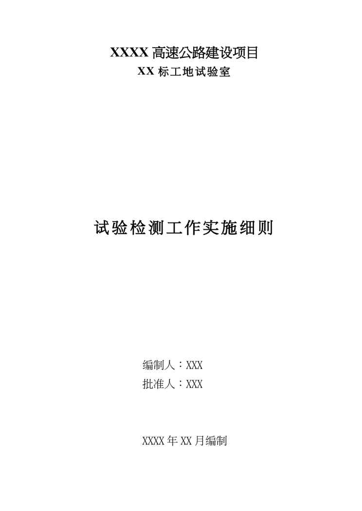 本站正式发布了《{项目管理项目报告}高速公路建设项目试验检测工作实施细则》文档,文档详细内容可下载阅读。 声明:本站所有文章,如无特殊说明或标注,均为本站原创发布。任何个人或组织,在未征得本站同意时,禁止复制、盗用、采集、发布本站内容到任何网站、书籍等各类媒体平台。如若本站内容侵犯了原著者的合法权益,可联系我们进行处理。