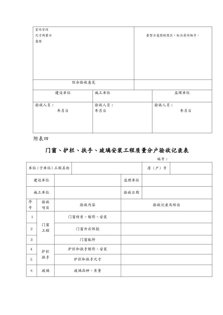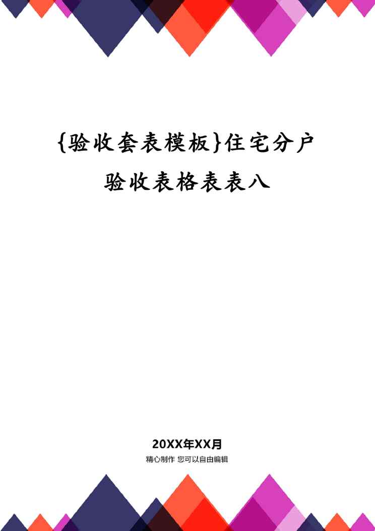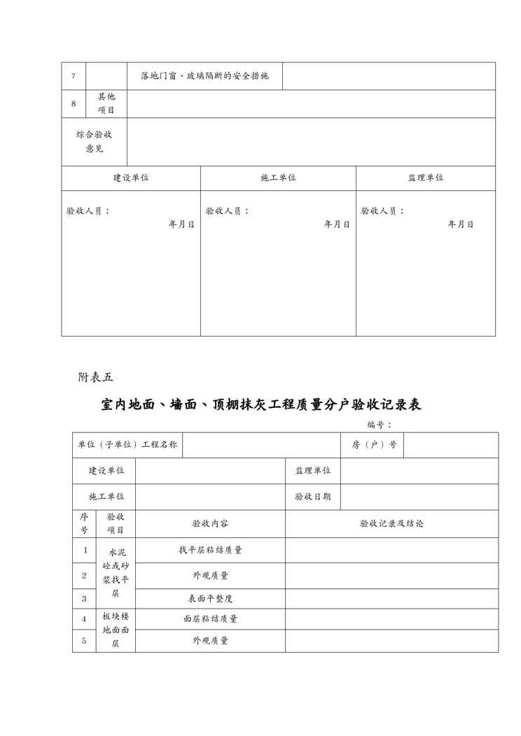 不久前,最新文档《{验收套表模板}住宅分户验收表格表表八》全文正式在本站发布,感兴趣的用户可以下载阅读。 声明:本站所有文章,如无特殊说明或标注,均为本站原创发布。任何个人或组织,在未征得本站同意时,禁止复制、盗用、采集、发布本站内容到任何网站、书籍等各类媒体平台。如若本站内容侵犯了原著者的合法权益,可联系我们进行处理。