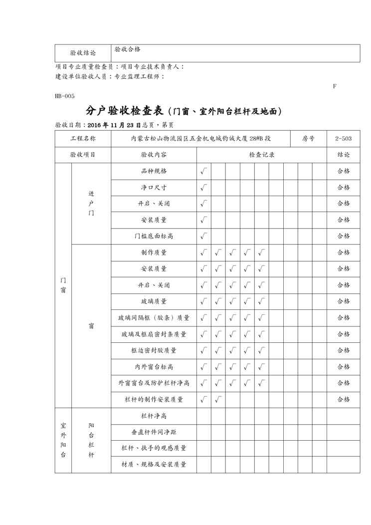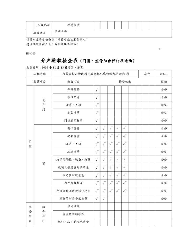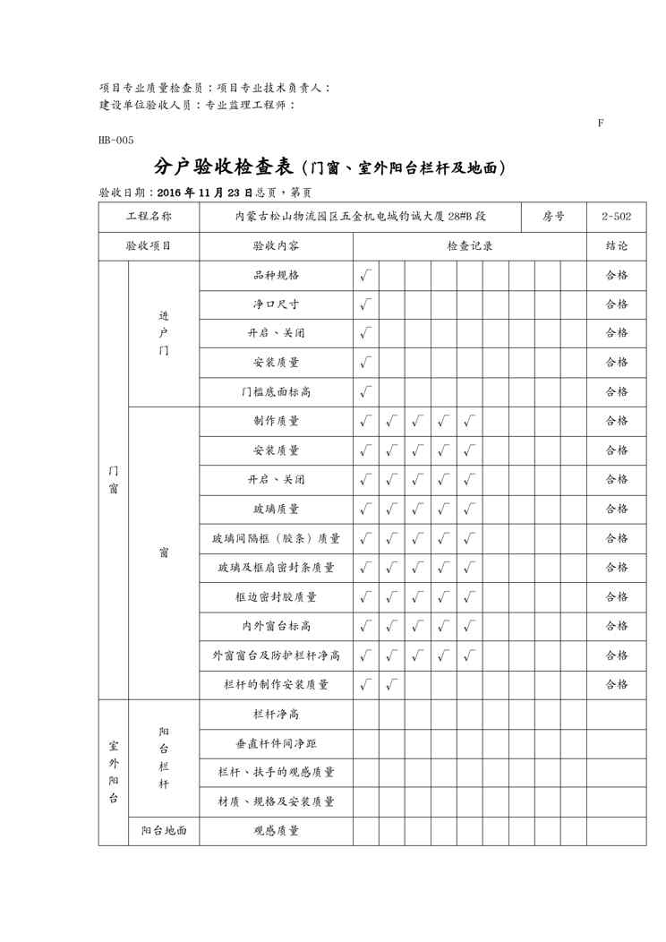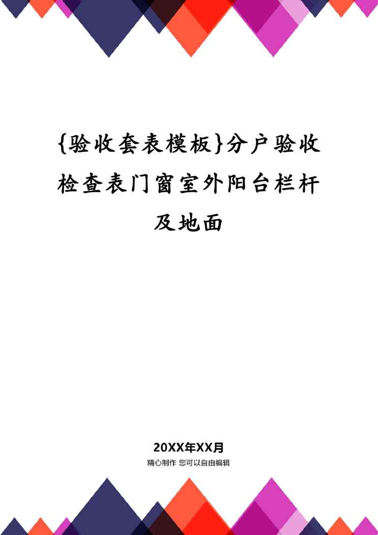 本站正式发布了《{验收套表模板}分户验收检查表门窗室外阳台栏杆及地面》文档,文档详细内容可下载阅读。 声明:本站所有文章,如无特殊说明或标注,均为本站原创发布。任何个人或组织,在未征得本站同意时,禁止复制、盗用、采集、发布本站内容到任何网站、书籍等各类媒体平台。如若本站内容侵犯了原著者的合法权益,可联系我们进行处理。