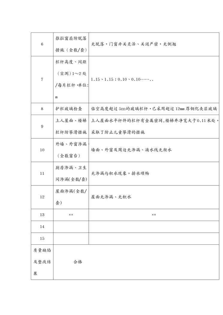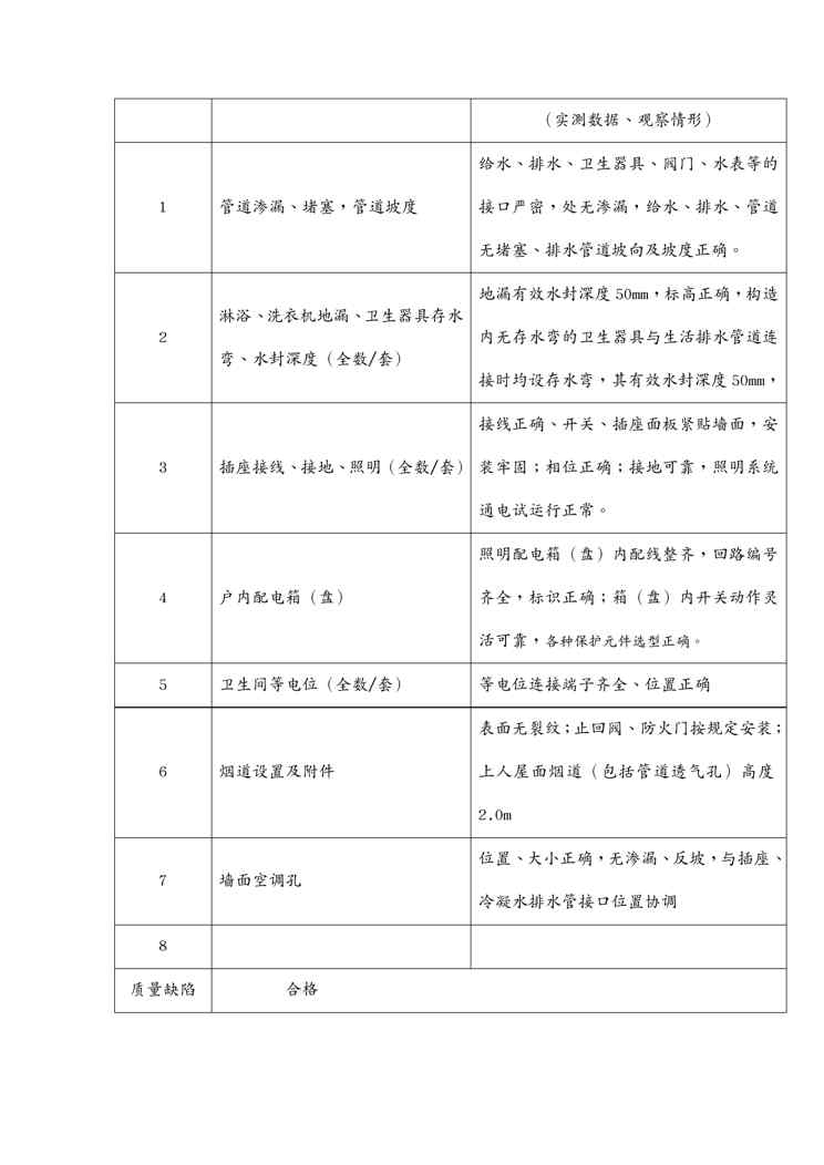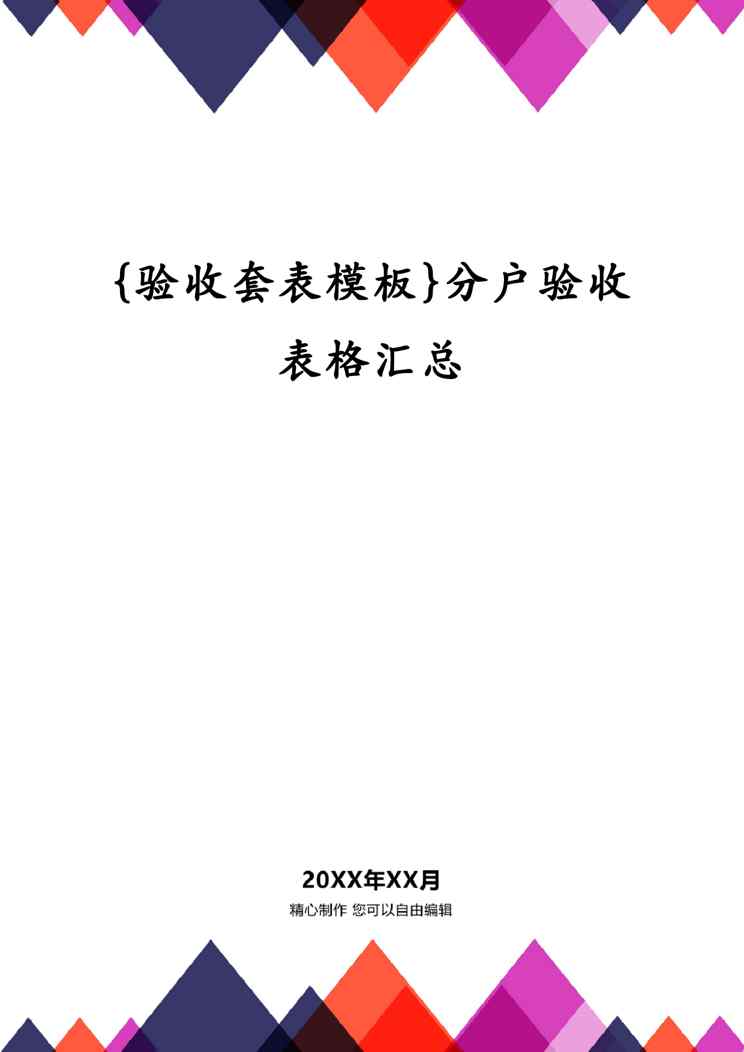 本站资深用户发布了最新的《{验收套表模板}分户验收表格汇总》文档,以下内容为预览,详细内容可下载阅读。 声明:本站所有文章,如无特殊说明或标注,均为本站原创发布。任何个人或组织,在未征得本站同意时,禁止复制、盗用、采集、发布本站内容到任何网站、书籍等各类媒体平台。如若本站内容侵犯了原著者的合法权益,可联系我们进行处理。