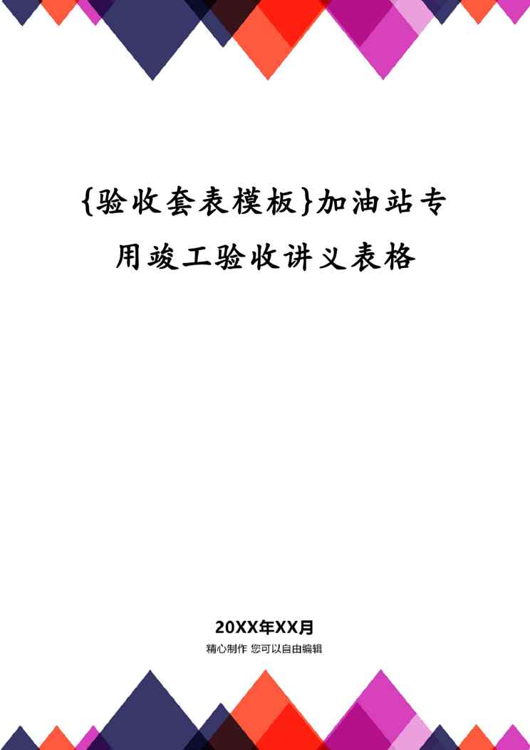 本站正式发布了《{验收套表模板}加油站专用竣工验收讲义表格》文档,文档详细内容可下载阅读。 声明:本站所有文章,如无特殊说明或标注,均为本站原创发布。任何个人或组织,在未征得本站同意时,禁止复制、盗用、采集、发布本站内容到任何网站、书籍等各类媒体平台。如若本站内容侵犯了原著者的合法权益,可联系我们进行处理。