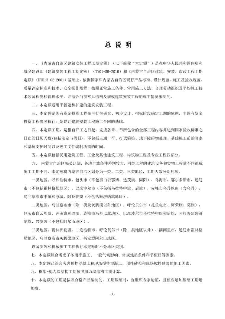 本站资深用户发布了最新的《《内蒙古自治区建筑安装工程工期定额》2018》文档,以下内容为预览,详细内容可下载阅读。 声明:本站所有文章,如无特殊说明或标注,均为本站原创发布。任何个人或组织,在未征得本站同意时,禁止复制、盗用、采集、发布本站内容到任何网站、书籍等各类媒体平台。如若本站内容侵犯了原著者的合法权益,可联系我们进行处理。