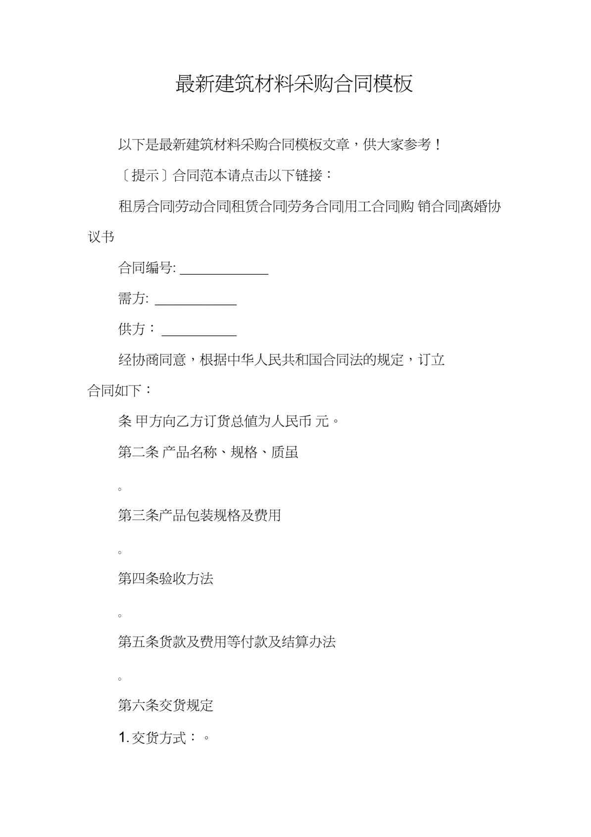 本站资深用户发布了最新的《《最新建筑材料采购合同模板》》文档,以下内容为预览,详细内容可下载阅读。 声明:本站所有文章,如无特殊说明或标注,均为本站原创发布。任何个人或组织,在未征得本站同意时,禁止复制、盗用、采集、发布本站内容到任何网站、书籍等各类媒体平台。如若本站内容侵犯了原著者的合法权益,可联系我们进行处理。