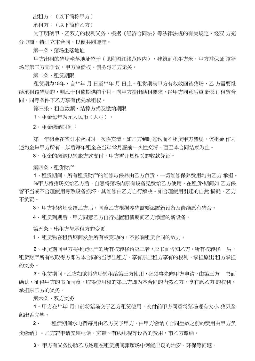 本站正式发布了《【厂房租赁合同范本】养殖厂房租赁合同》文档,文档详细内容可下载阅读。 声明:本站所有文章,如无特殊说明或标注,均为本站原创发布。任何个人或组织,在未征得本站同意时,禁止复制、盗用、采集、发布本站内容到任何网站、书籍等各类媒体平台。如若本站内容侵犯了原著者的合法权益,可联系我们进行处理。