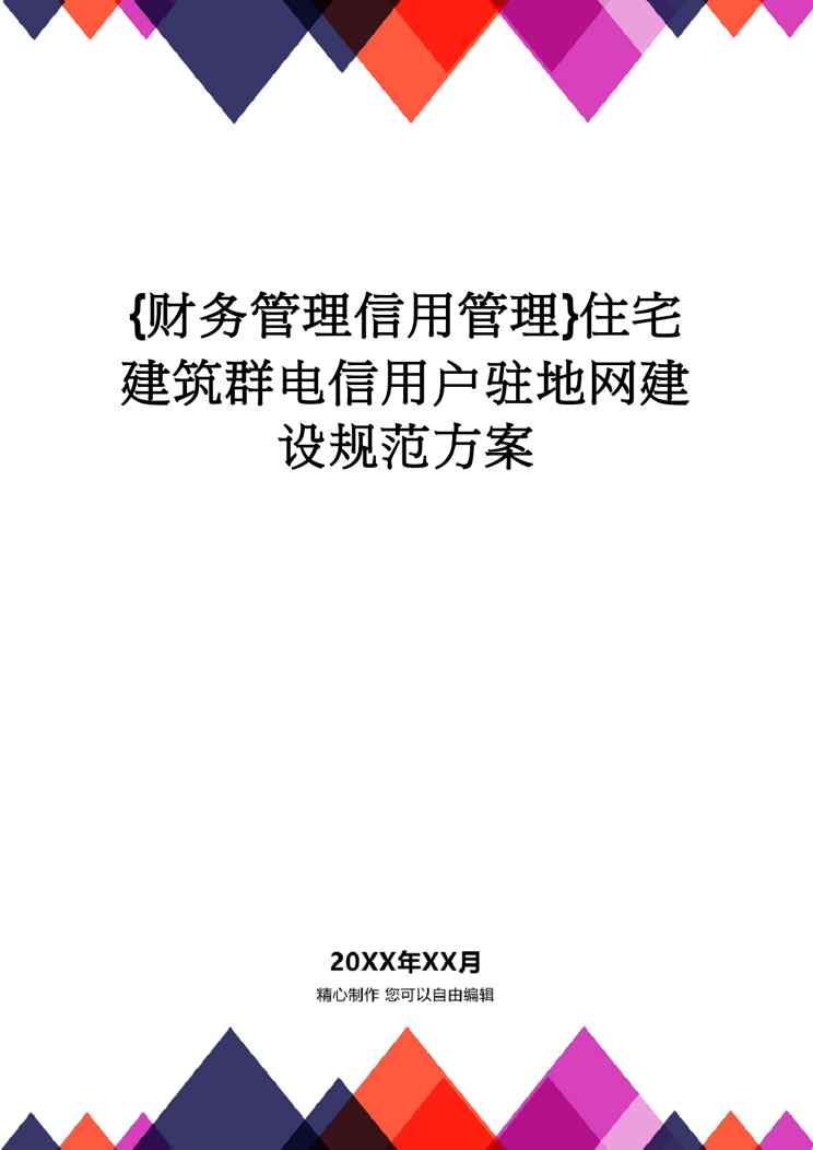 不久前,最新文档《【财务管理信用管理 】住宅建筑群电信用户驻地网建设规范方案》全文正式在本站发布,感兴趣的用户可以下载阅读。 声明:本站所有文章,如无特殊说明或标注,均为本站原创发布。任何个人或组织,在未征得本站同意时,禁止复制、盗用、采集、发布本站内容到任何网站、书籍等各类媒体平台。如若本站内容侵犯了原著者的合法权益,可联系我们进行处理。