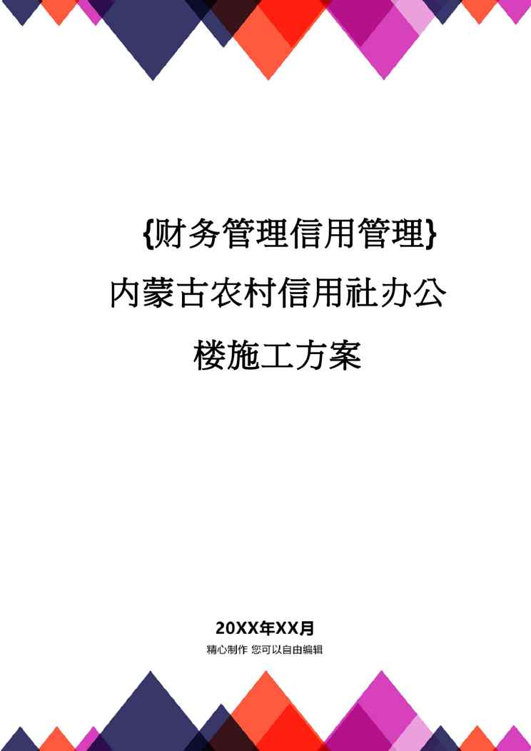 本站资深用户发布了最新的《【财务管理信用管理 】内蒙古农村信用社办公楼施工方案》文档,以下内容为预览,详细内容可下载阅读。 声明:本站所有文章,如无特殊说明或标注,均为本站原创发布。任何个人或组织,在未征得本站同意时,禁止复制、盗用、采集、发布本站内容到任何网站、书籍等各类媒体平台。如若本站内容侵犯了原著者的合法权益,可联系我们进行处理。