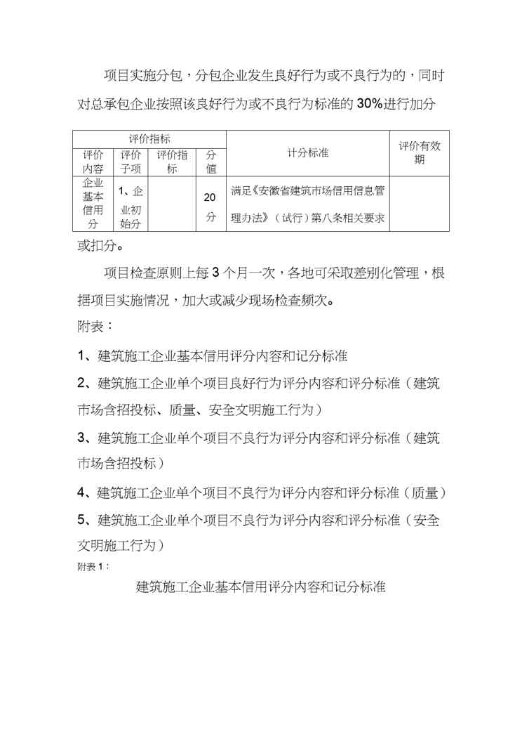 本站资深用户发布了最新的《【财务管理信用管理 】建筑企业信用评分内容和评分标准》文档,以下内容为预览,详细内容可下载阅读。 声明:本站所有文章,如无特殊说明或标注,均为本站原创发布。任何个人或组织,在未征得本站同意时,禁止复制、盗用、采集、发布本站内容到任何网站、书籍等各类媒体平台。如若本站内容侵犯了原著者的合法权益,可联系我们进行处理。