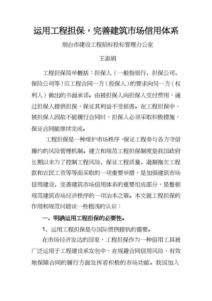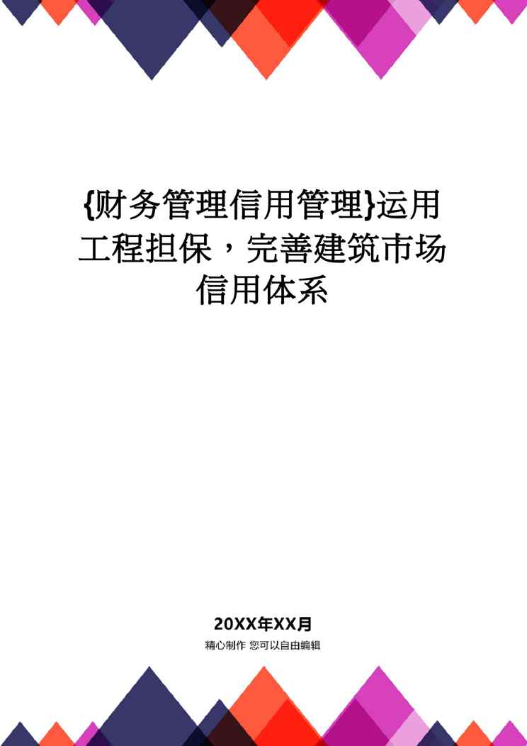不久前,最新文档《【财务管理信用管理 】运用工程担保,完善建筑市场信用体系》全文正式在本站发布,感兴趣的用户可以下载阅读。 声明:本站所有文章,如无特殊说明或标注,均为本站原创发布。任何个人或组织,在未征得本站同意时,禁止复制、盗用、采集、发布本站内容到任何网站、书籍等各类媒体平台。如若本站内容侵犯了原著者的合法权益,可联系我们进行处理。