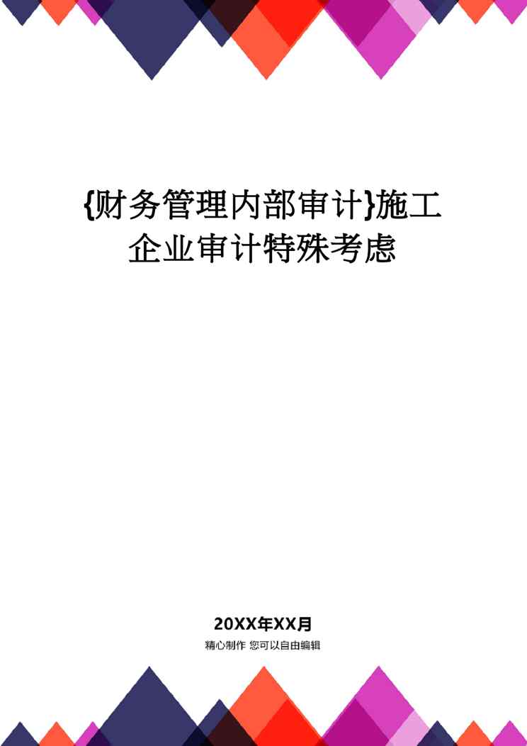 不久前,最新文档《【财务管理内部审计 】施工企业审计特殊考虑》全文正式在本站发布,感兴趣的用户可以下载阅读。 声明:本站所有文章,如无特殊说明或标注,均为本站原创发布。任何个人或组织,在未征得本站同意时,禁止复制、盗用、采集、发布本站内容到任何网站、书籍等各类媒体平台。如若本站内容侵犯了原著者的合法权益,可联系我们进行处理。