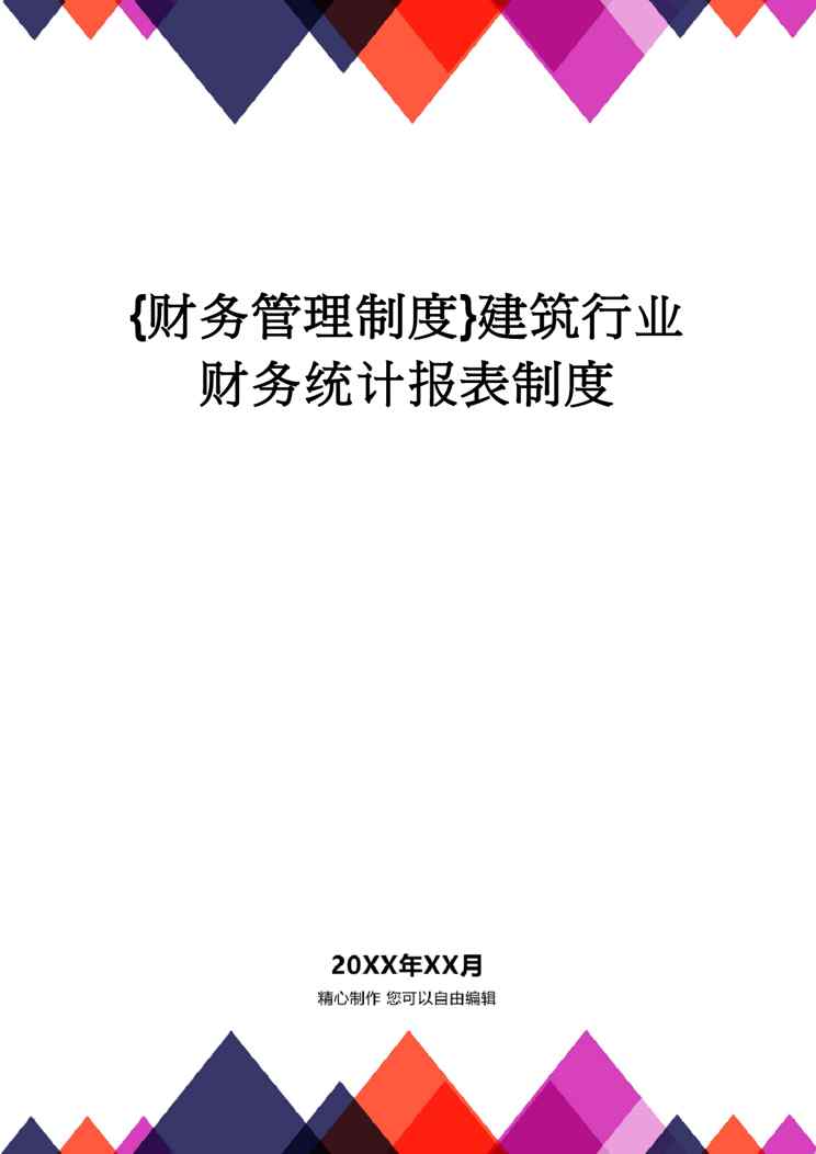 本站资深用户发布了最新的《【财务管理制度 】建筑行业财务统计报表制度》文档,以下内容为预览,详细内容可下载阅读。 声明:本站所有文章,如无特殊说明或标注,均为本站原创发布。任何个人或组织,在未征得本站同意时,禁止复制、盗用、采集、发布本站内容到任何网站、书籍等各类媒体平台。如若本站内容侵犯了原著者的合法权益,可联系我们进行处理。