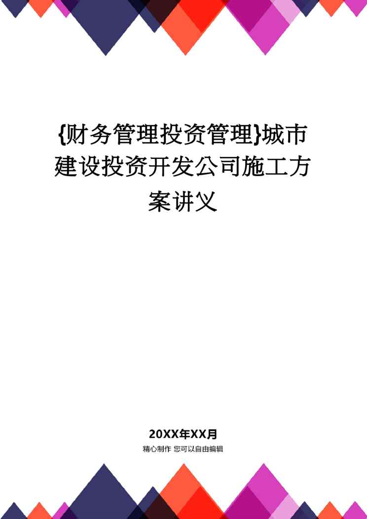 不久前,最新文档《【财务管理投资管理 】城市建设投资开发公司施工方案讲义》全文正式在本站发布,感兴趣的用户可以下载阅读。 声明:本站所有文章,如无特殊说明或标注,均为本站原创发布。任何个人或组织,在未征得本站同意时,禁止复制、盗用、采集、发布本站内容到任何网站、书籍等各类媒体平台。如若本站内容侵犯了原著者的合法权益,可联系我们进行处理。