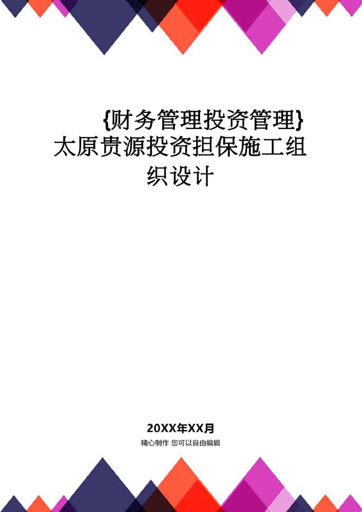 不久前,最新文档《【财务管理投资管理 】太原贵源投资担保施工组织设计》全文正式在本站发布,感兴趣的用户可以下载阅读。 声明:本站所有文章,如无特殊说明或标注,均为本站原创发布。任何个人或组织,在未征得本站同意时,禁止复制、盗用、采集、发布本站内容到任何网站、书籍等各类媒体平台。如若本站内容侵犯了原著者的合法权益,可联系我们进行处理。