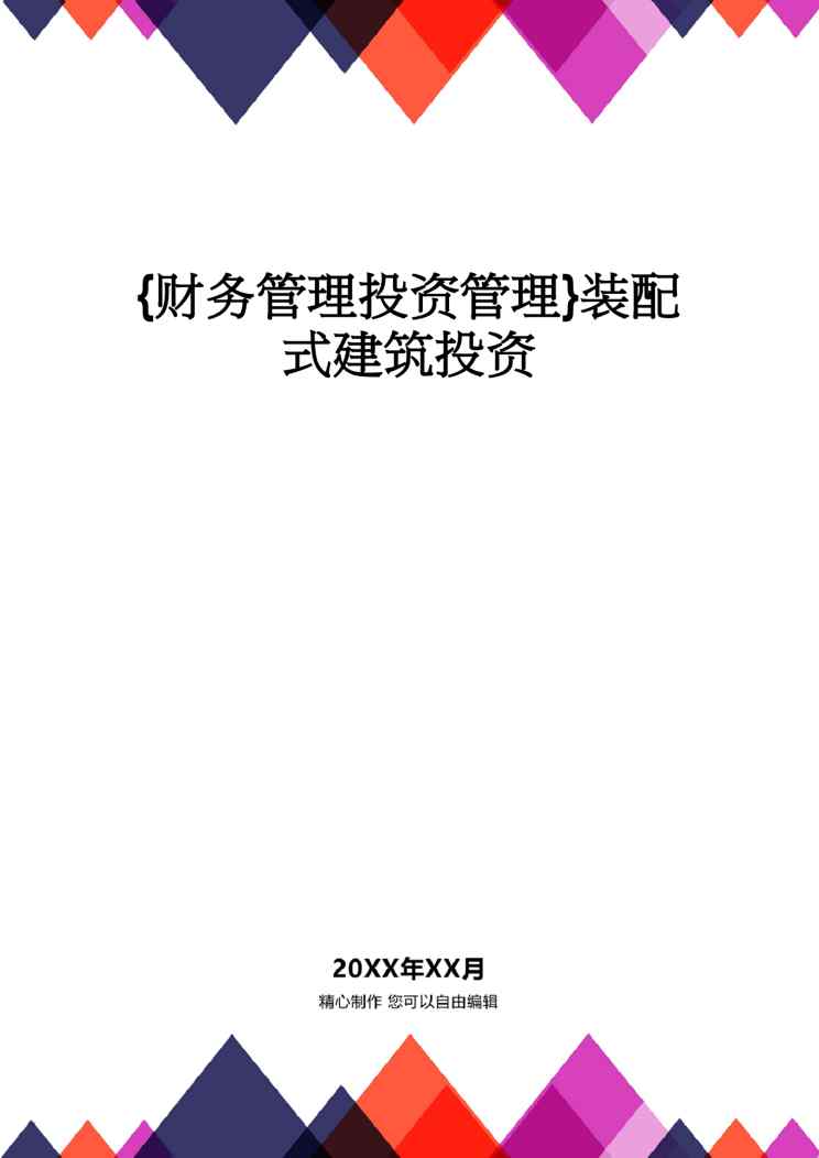 本站正式发布了《【财务管理投资管理 】装配式建筑投资》文档,文档详细内容可下载阅读。 声明:本站所有文章,如无特殊说明或标注,均为本站原创发布。任何个人或组织,在未征得本站同意时,禁止复制、盗用、采集、发布本站内容到任何网站、书籍等各类媒体平台。如若本站内容侵犯了原著者的合法权益,可联系我们进行处理。