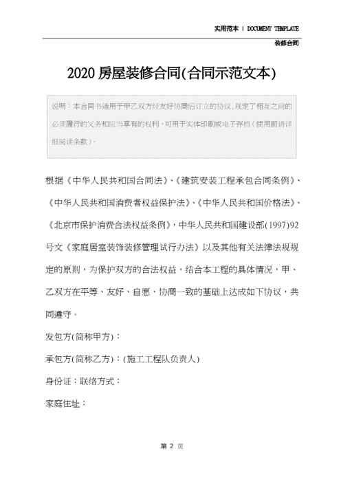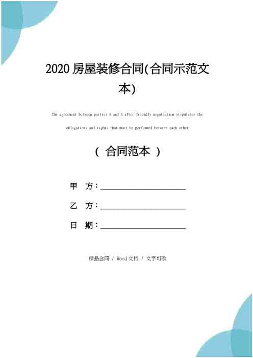 不久前,最新文档《2020房屋装修合同(合同示范文本)》全文正式在本站发布,感兴趣的用户可以下载阅读。 声明:本站所有文章,如无特殊说明或标注,均为本站原创发布。任何个人或组织,在未征得本站同意时,禁止复制、盗用、采集、发布本站内容到任何网站、书籍等各类媒体平台。如若本站内容侵犯了原著者的合法权益,可联系我们进行处理。