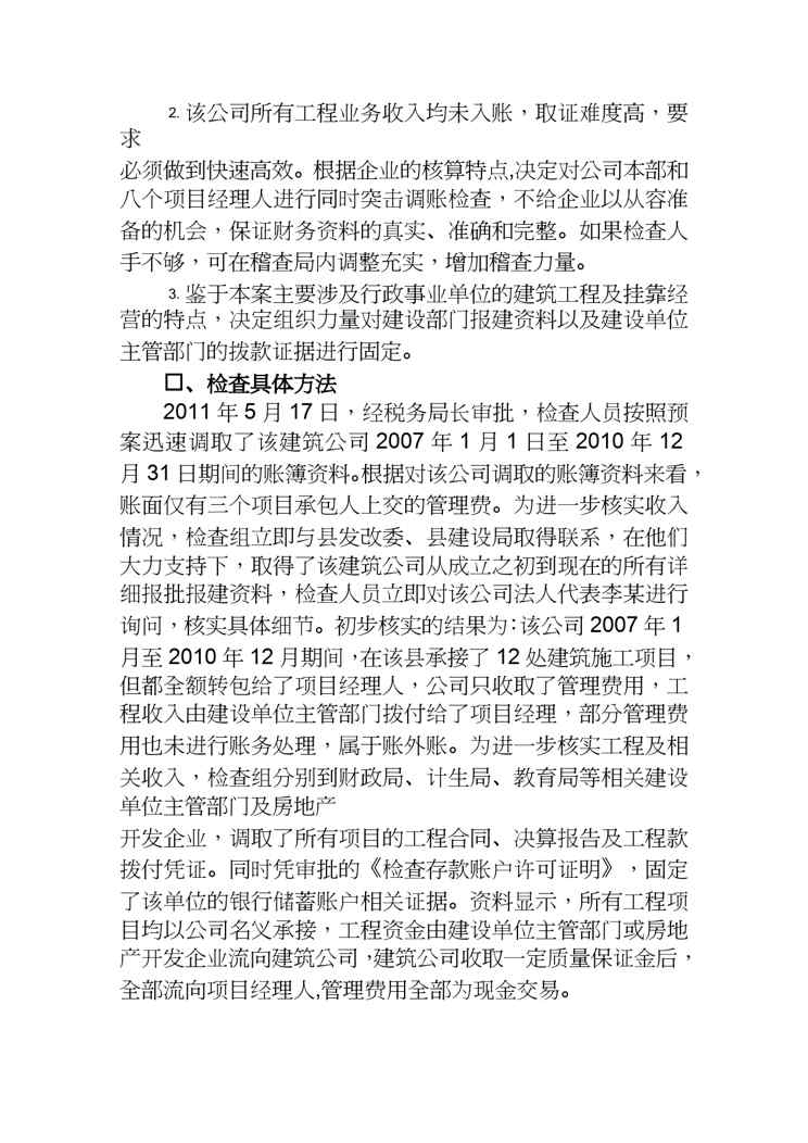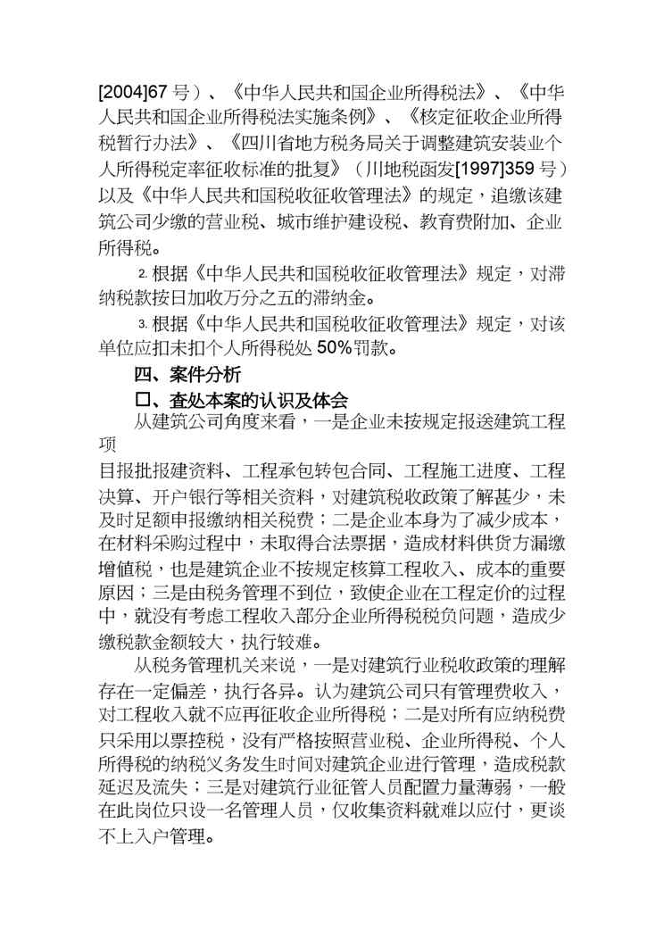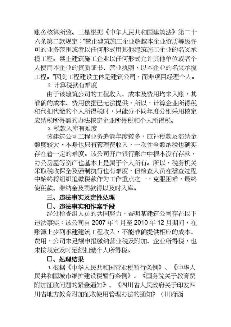 不久前,最新文档《【财务管理收益管理 】某建筑公司挂靠经营不计收入偷税案》全文正式在本站发布,感兴趣的用户可以下载阅读。 声明:本站所有文章,如无特殊说明或标注,均为本站原创发布。任何个人或组织,在未征得本站同意时,禁止复制、盗用、采集、发布本站内容到任何网站、书籍等各类媒体平台。如若本站内容侵犯了原著者的合法权益,可联系我们进行处理。