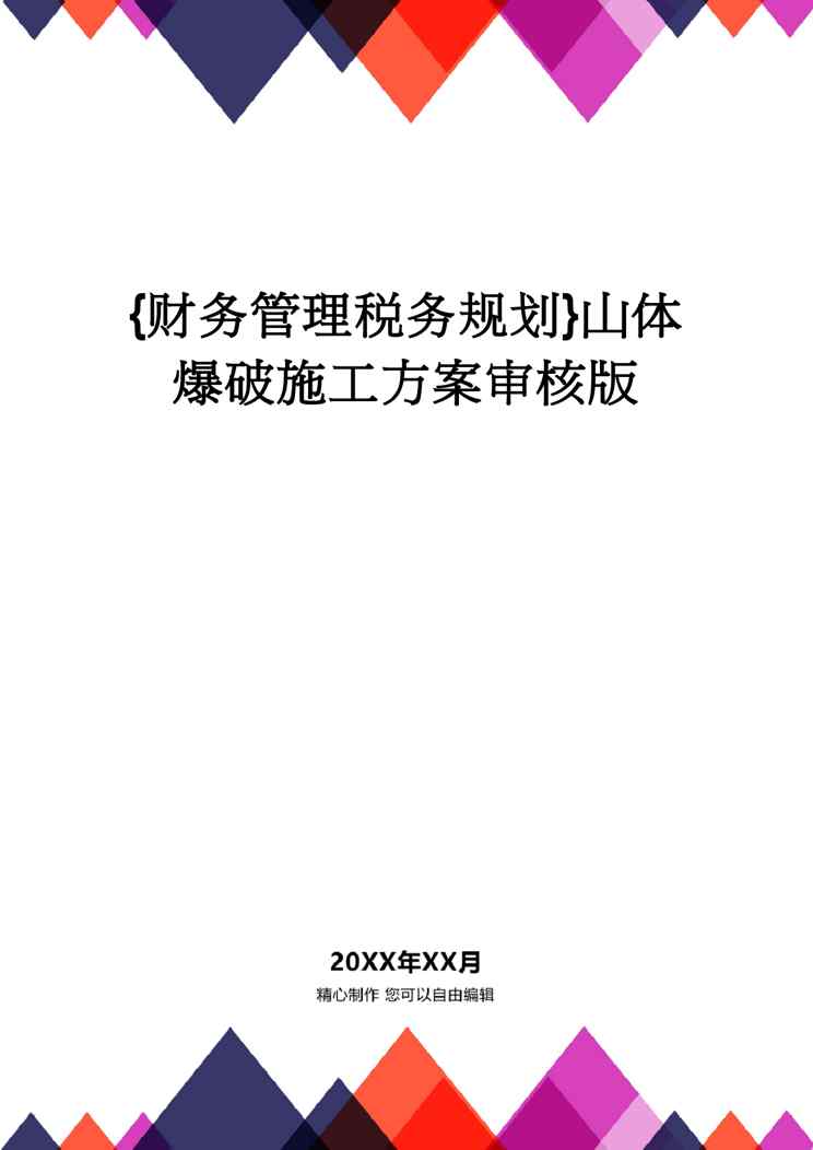 不久前,最新文档《【财务管理税务规划 】山体爆破施工方案审核版》全文正式在本站发布,感兴趣的用户可以下载阅读。 声明:本站所有文章,如无特殊说明或标注,均为本站原创发布。任何个人或组织,在未征得本站同意时,禁止复制、盗用、采集、发布本站内容到任何网站、书籍等各类媒体平台。如若本站内容侵犯了原著者的合法权益,可联系我们进行处理。